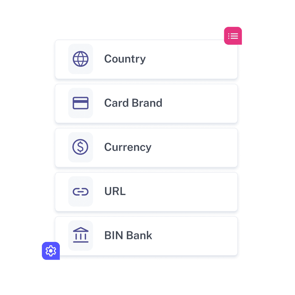 Controla tus flujos de pago con múltiples variables adaptadas a las necesidades de tu negocio y mejora las tasas de aprobación.