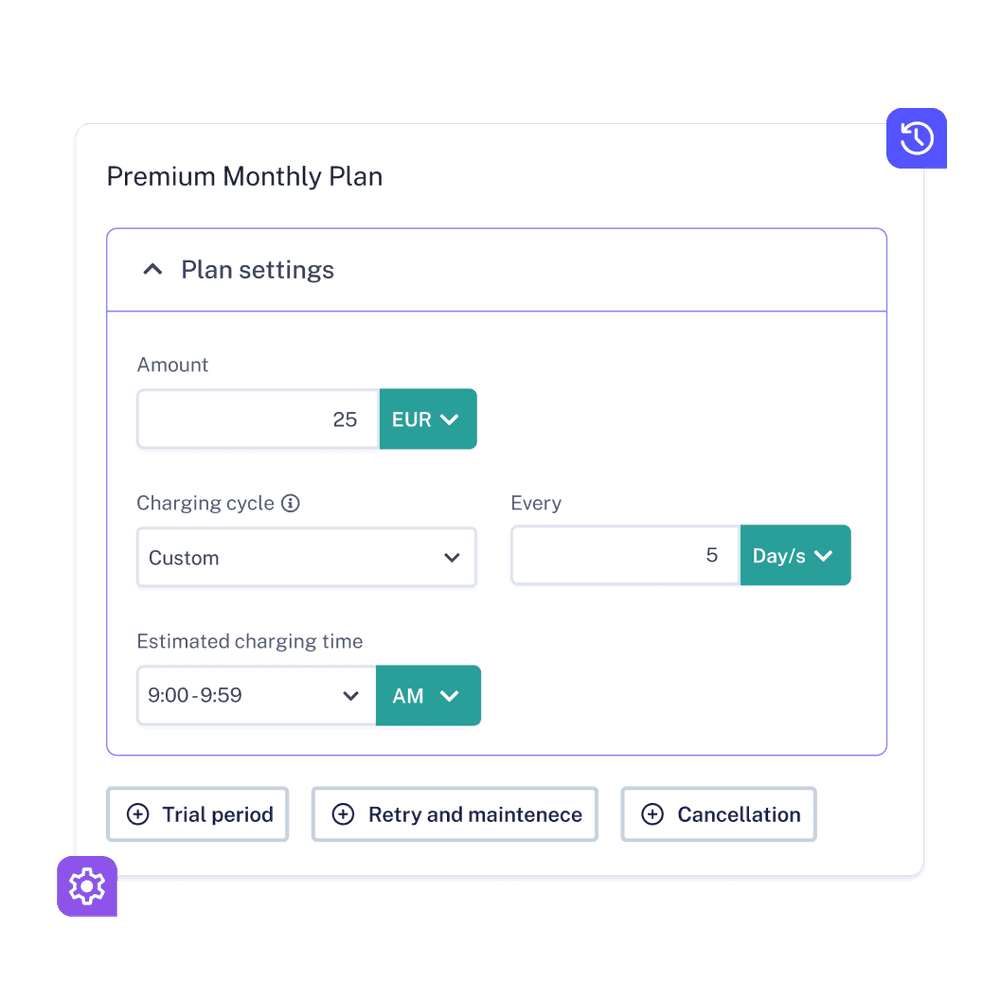 Optimize your income flow by day of the week, date, the hour you want to make retries, and the payment frequency.